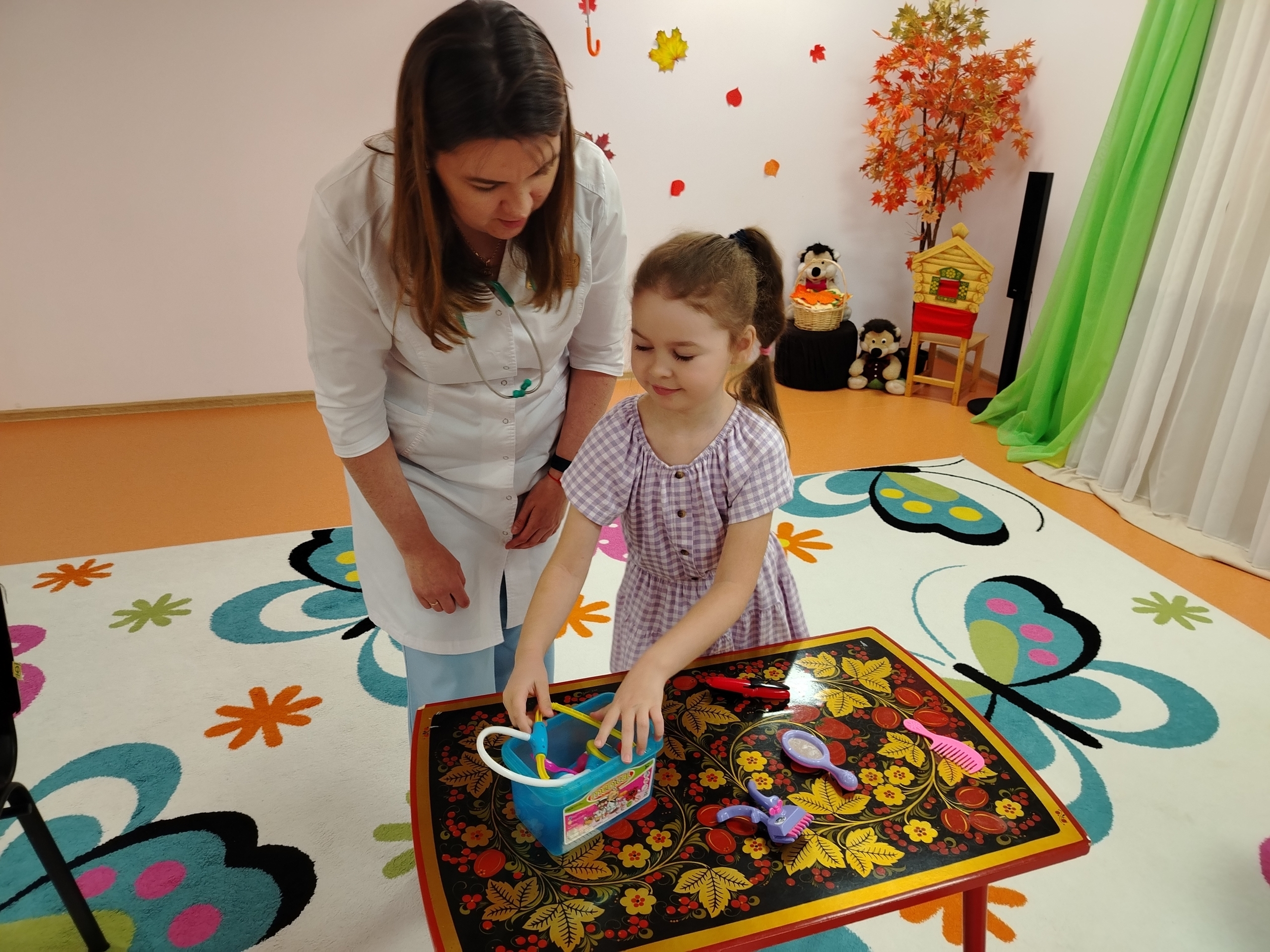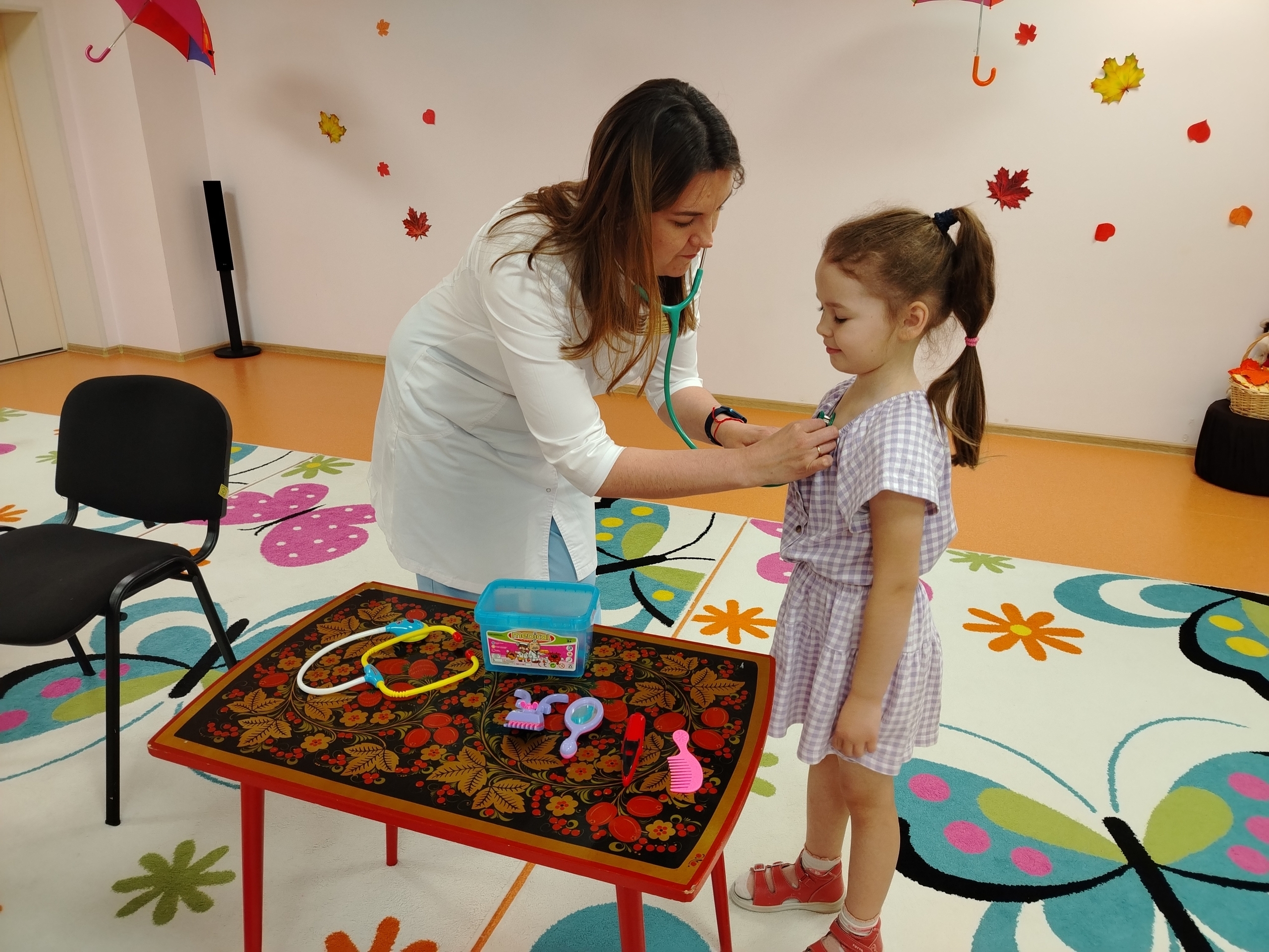 Воспитатели провели увлекательную игру «Собери аптечку», в которой детям было предложено выбрать необходимые предметы для работы врача. Дети с энтузиазмом выбирали препараты и инструменты, а доктор рассказала про каждый предмет, объясняя его назначение.
