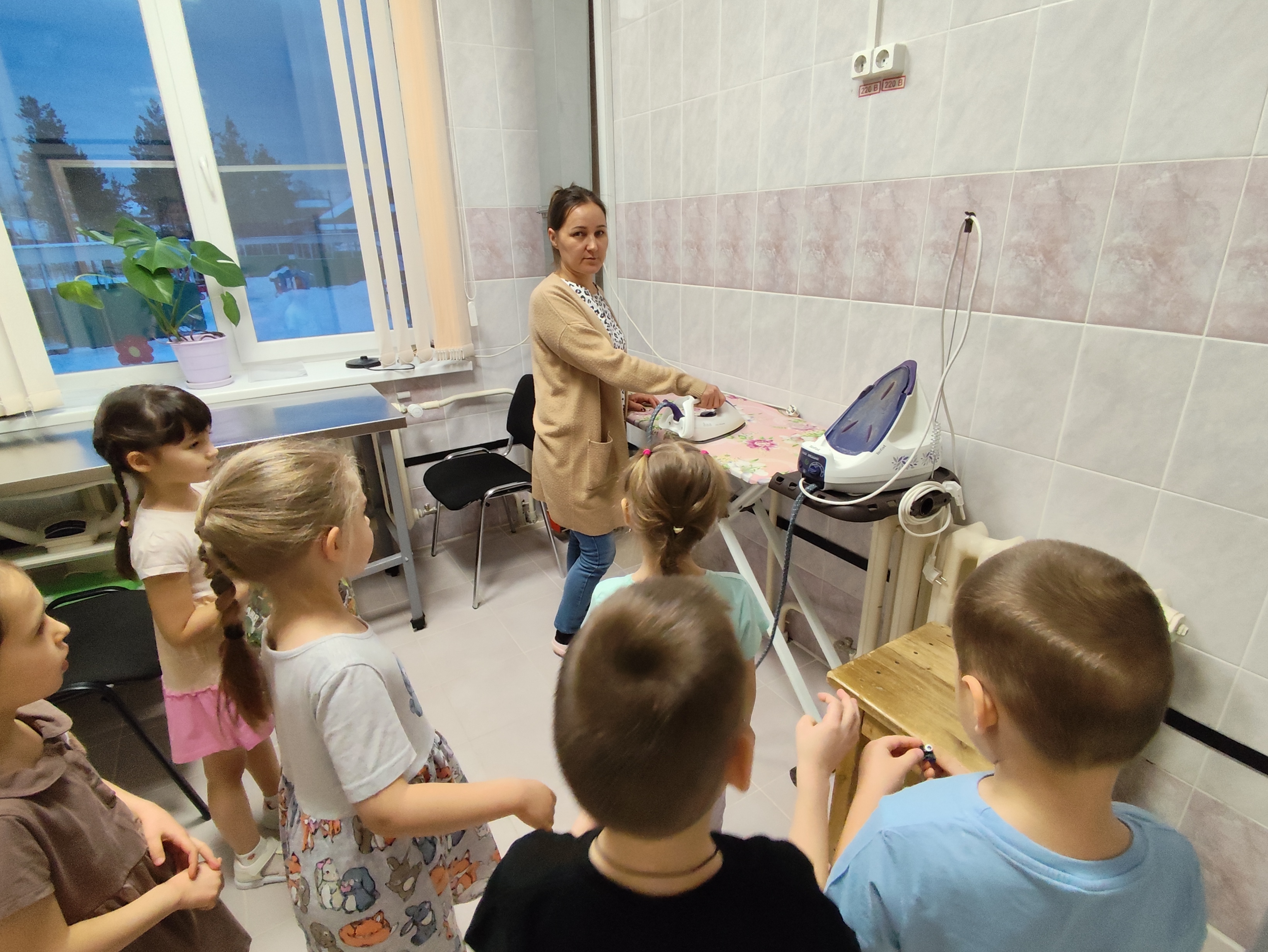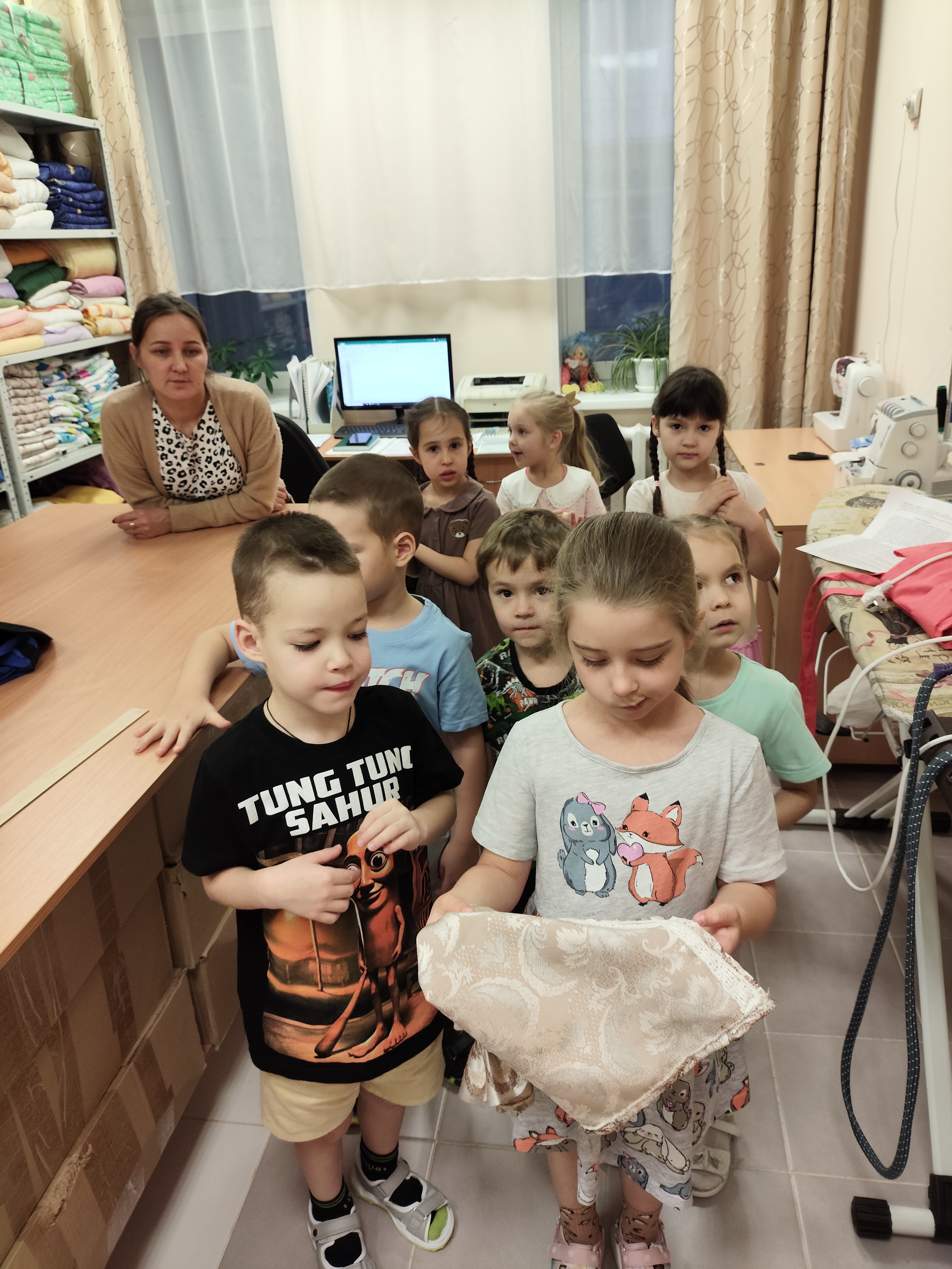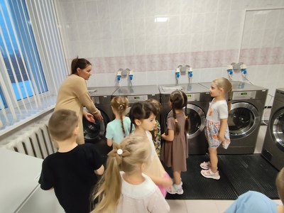 В старшей группе «Искорки» произошло замечательное событие. Наши ребята отправились в гости в мастерскую к кастелянше Ангелине Валерьевне с просьбой помочь зашить порванное кукольное покрывало. Ангелина Валерьевна встретила детей с большим теплом и радушием. С удовольствием она выполнила их просьбу, и ребята были в восторге, увидев, как быстро и аккуратно была сделана работа. Дети поблагодарили её за усилия и отметили, что всё было выполнено очень красиво. Но это было только начало! Ангелина Валерьевна провела для нас увлекательную экскурсию по своей мастерской. Она рассказала о своей профессии, показав, что хранится в шкафах и стеллажах: разнообразные ткани, костюмы, белье, клубки с тесьмой и катушки с нитками. Мы удивились, как удобно организовано пространство, чтобы работать было комфортно. После этого дети посетили прачечную и узнали много интересного о бытовой технике нашего детского сада. Это было настоящим открытием! В завершение встречи мы подвели итог: «Трудом Ангелины Валерьевны создается уют и красота в нашем саду!» Дети ушли с улыбками и новыми знаниями, а главное — с пониманием важности труда других людей.