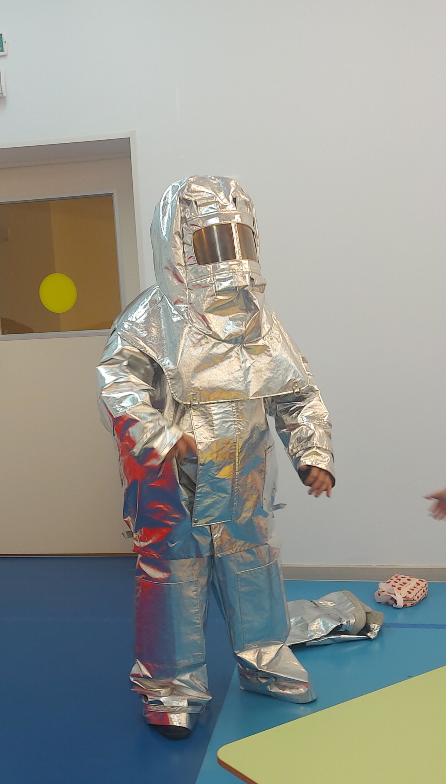 Интерес детей был вызван не только подвигами нашего гостя, но и тем, что он принес с собой настоящий арсенал пожарного оборудования! Первым делом Николай Александрович продемонстрировал пожарный противогаз. Ребята с любопытством рассматривали его, задавая множество вопросов о том, как он работает и для чего необходим. Николай Александрович подробно объяснил, что противогаз защищает органы дыхания пожарного от дыма и токсичных веществ. Он рассказал нашим маленьким слушателям о важности безопасности и о том, как необходимо вести себя в случае пожара. Ребята смогли по очереди примерить некоторые элементы экипировки, почувствовав себя хоть ненадолго героями огненного фронта.