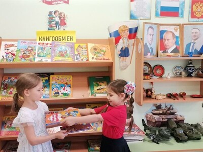 «Возьми книгу – поделись своей!» И, конечно же, ребята не забыли о создании постоянной площадки для книгообмена. Они организовали специальный стеллаж, где каждый желающий может взять домой понравившуюся книгу, а взамен положить свою.