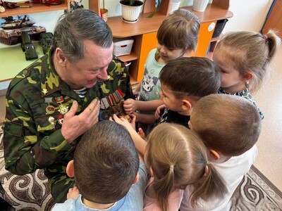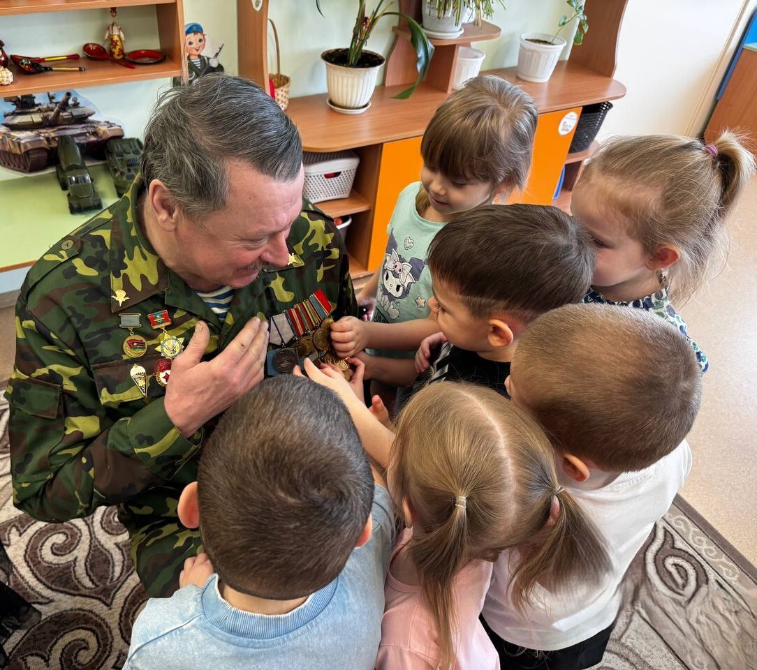 Воспитанники детского сада «Гусельки» корпуса 3 встретились с особым гостем — ветераном «БОЕВОГО БРАТСТВА» Югры Валерием Варачевым. Валерий Валентинович поделился с ребятами историями из своей службы, рассказал о том, как важно быть готовым встать на защиту Родины и бережно относиться к её миру и безопасности.