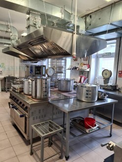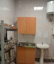 На первом этаже расположены: пищеблок, медицинский блок и часть помещений учебно-административного блока. Медицинский блок имеет изолятор на две палаты.
