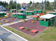 Каждая возрастная группа имеет площадки для прогулок, теневые навесы, малые архитектурные формы. Территория озеленена насаждениями - деревьями, кустарниками, цветами.