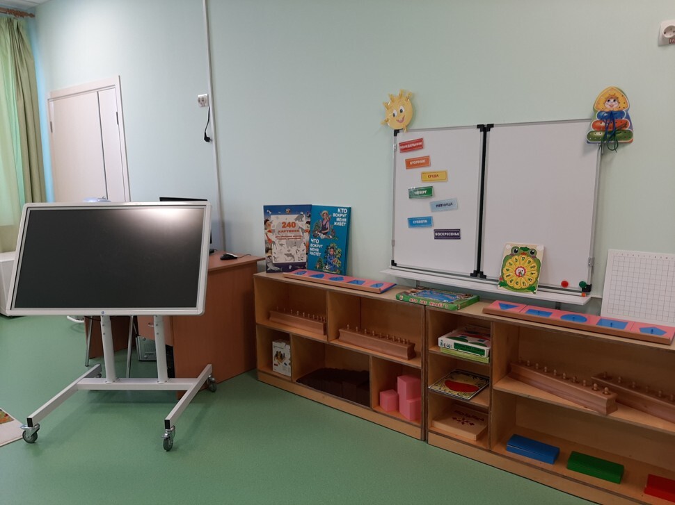 В рекреациях детского учреждения расположены развивающие настенные панели и тематические центры разных направлений, которые предназначены для общего развития детей. В учреждении размещены два физкультурных зала и тренажерный зал, которые оснащены современным, отвечающим всем стандартам спортивным инвентарем и оборудованием. Для развития у детей представлений о русской культуре, особенностях жизни и быта русского народа создан музей "Русская изба". Для художественного творчества дошкольников имеется мастерская. Оборудование и материально-техническая база творческой мастерской позволяет реализовывать программу по дополнительным услугам «Волшебный песочек» с целью развития у детей творческих способностей и психолого-педагогической поддержки средствами песочной анимации. Музыкальные залы оформлены по тематическим направлениям, в которых предусматривается проведение музыкальных занятий, праздников, развлечений, театрализованных представлений с детьми, приобщение к художественно-эстетической культуре посредством музыкального искусства, воспитание интереса и любви к музыке. Имеется три логопедических кабинета для оказания своевременной коррекционной помощи воспитанникам с различными нарушениями в развитии устной речи, а также детей-инвалидов и детей с ОВЗ, в соответствии с ФГОС ДОО, кабинет педагога - психолога для обеспечения психологической комфортной атмосферы и эмоционального благополучия для всех участников педагогического процесса. Сенсорная комната специально оборудованное помещение, предназначенное для проведения развивающих занятий с детьми. Комната Монтессори — это создание специальной развивающей монтессори-среды вокруг ребёнка, которой он совершенствует свои физические навыки, развивает сенсорную память и тактильные ощущения, учится сопоставлять различные предметы и явления, приобретает жизненный опыт, соответствующий его возрасту. Компьютерно-игровой класс рассчитан на 15 обучающихся. Оснащен современным цифровым оборудованием. В кабинете имеется 15 персональных компьютеров, интерактивная доска и мультимедийный проектор. На всех компьютерах установлено лицензионное программное обеспечение, единая локальная сеть и выход в интернет. Имеются кабинет «Финансовая грамотность», «Шахматы», «Лего-конструирование».